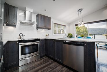 The Kitchen features full size stainless steel appliances including a fridge, stove, oven, dishwasher, microwave, blender, coffee maker and toaster. It comes fully stocked with all the amenities you would expect in a premium vacation rental.